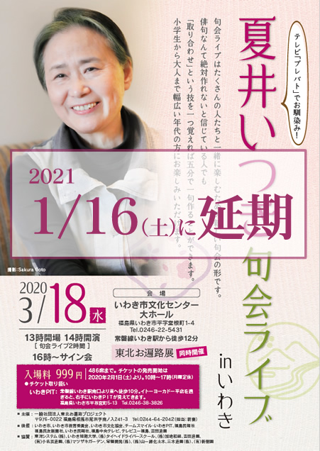 」を1月16日(土)に延期いたします。会場や開催時間に変更はございません。お手持ちのチケットはそのままご利用できます。