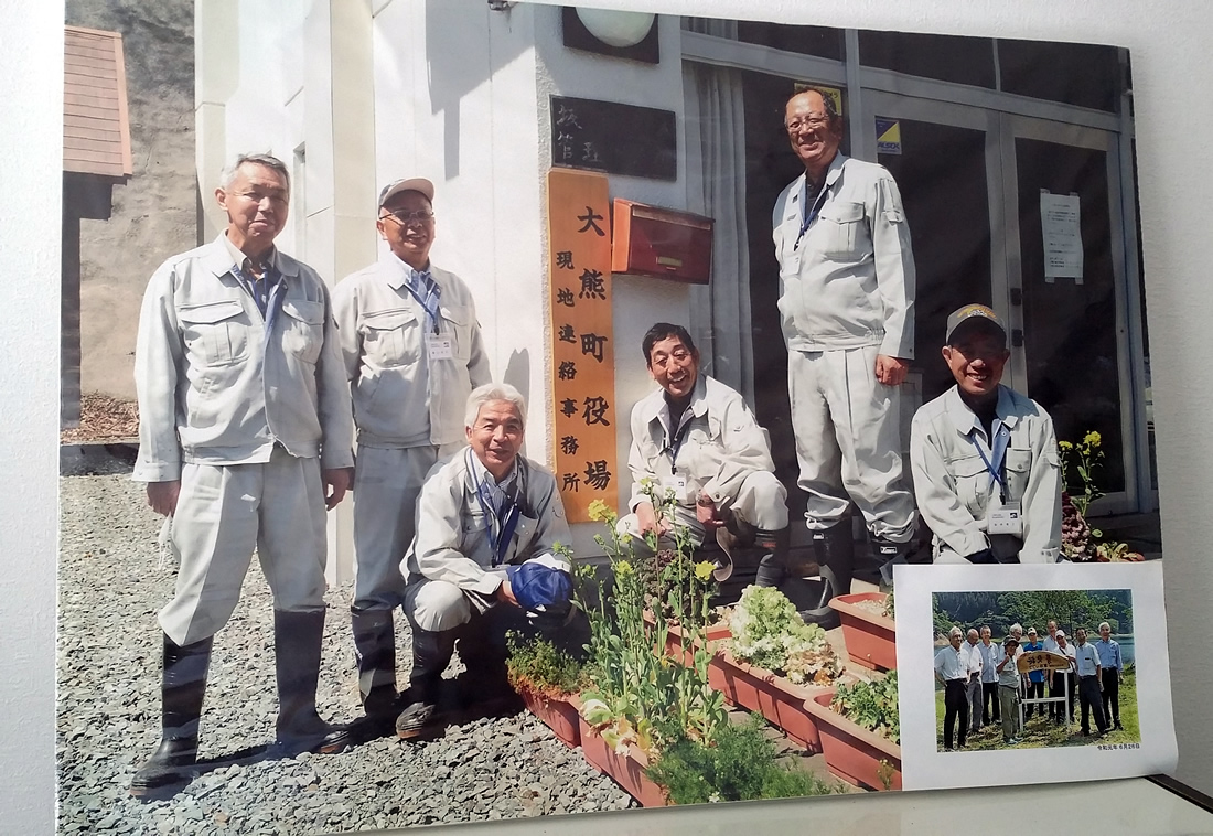 Okuma town is where the Reactors 1 to 4 of the Fukushima Daiichi Nuclear Power Plant are located. In April 2013, the town needed staff to accompany residents visiting their homes, but radiation levels remained high. Okuma Town recalls, "We couldn't send young staff", so six executives, including the former head of administration, took on the task to prepare for the town's recovery by cleaning ditches, cutting grass and conducting security patrols. This six self-proclaimed 'Jiji (grandpa) Troop' was based at the Sakashita Dam Management Office (the former Okuma Town Field Office). The new town office opened in March 2019. The Jiji Troop handed over their role to the current staff. However, Okuma Town has only decontaminated 860ha, 10% of the town's area.