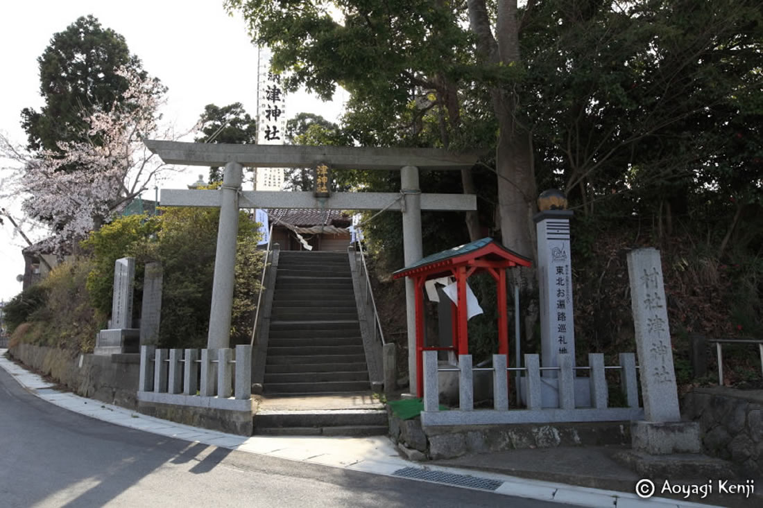 日本三代実録”に記述された貞観津波、また慶長津波の際も津波が神社すぐ近くまで迫りながらも被害を免れた伝承があり今回の東日本大震災にも、津神社へ避難されたたくさんの方が無事でした。