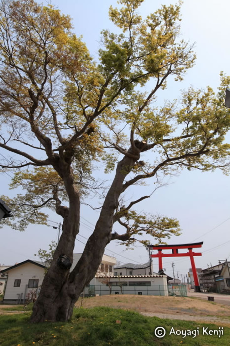 大鳥居に壊れた家屋がひっかかり、津波の力を弱めたが、鳥居のところで多くの遺体が発見された。楓の木は、過去の津波の時にこれに捕まって助かったという話が残っている。今回も多くの人が楓を目指して逃げて助かった。愛宕神社に続く参道に大鳥居があり、津波の瓦礫がここで食い止められた。多くの人の遺体を収容する場にもなった。鳥居のそばには明治の津波の際にここにぶら下がって人が助かったという楓があり、切られずに鳥居のそばに移植されていたもので、津波の記憶を継承するにふさわしいとのこと。