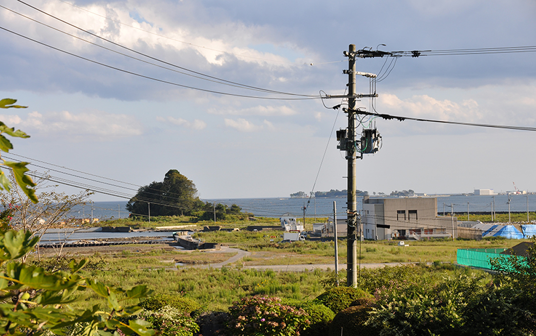 気仙沼湾に面する海抜10mの神社。多くの人がすぐに避難してきて33人が無事だった。津波で孤島になり、あと1mで水没するくらいまで波が迫り避難した人たちが流されないよう境内の木々にロープを張り巡らして助かった。神社は海が近かったが、波が直接当たらなかったので全員助かった。大明神様に助けられたことに感謝し、津波の怖さと非難することの大切さを語り継いでいきたい。